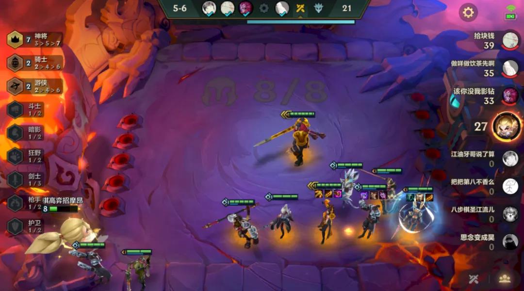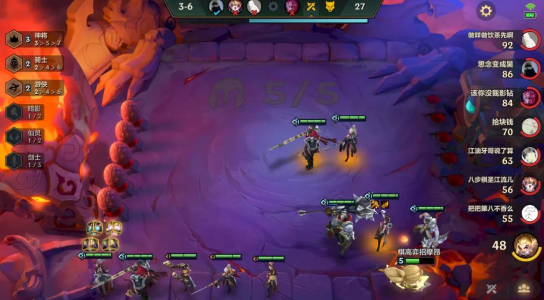 5人口阵容选择:2骑士+3神将+2游侠就可,如果来齐天大圣(猴哥)或曙光神将(蕾欧娜)也不要上5神将,强度没有神将骑士游侠高。
