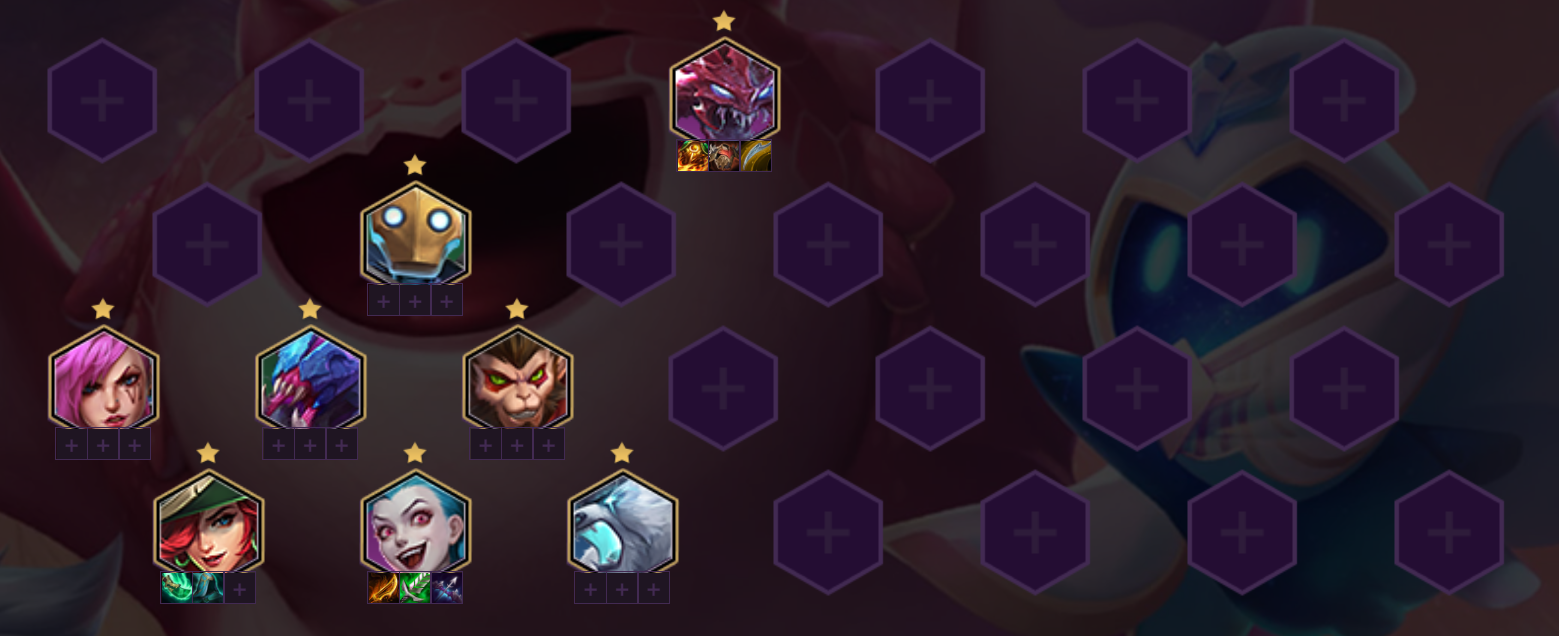 这套阵容是属于一套进阶版的上分阵容,能够在铂金局以上大杀四方,但是这套阵容非常吃运营过渡,不建议新手玩家使用。
