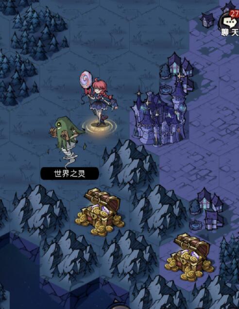 刚出来有世界之灵击毙,后面的世界之灵躲藏在草丛里,你得点那个草,把它击毙就可以打开宝箱了。看图片(它狡猾地躲在草丛)
