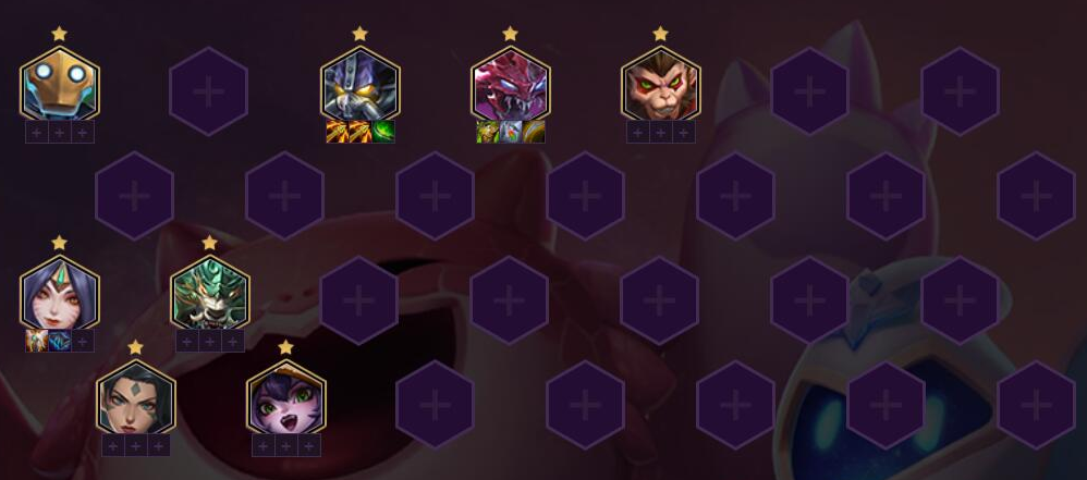 体系核心玩法给大家说一下:南天之怒(狼人)没有3星后面可以换狻猊之心(纳尔),可以下2斗士上3换形或3约德尔。(灵活变阵)