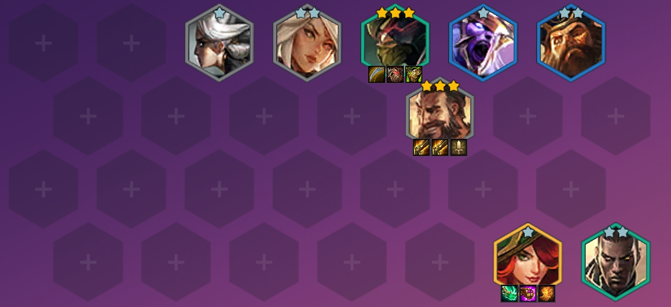 前期尽可能拿男枪、海上幽影、命运之手这三张牌组成3豪侠过度,3豪侠的额外金币可以让你更快的到达50金币吃利息。增加无畏重炮三星的可能性。阵容完整度比较依赖金铲子和反曲弓,所以连败了也没关系又或者说我们需要连败,此时的连败只是为了以后更好的连胜。(3豪侠的阵容强度属实是不忍直视)