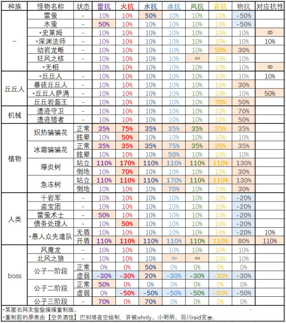附一张别人的怪物抗性图