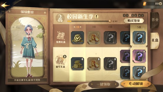 作业奖励有免费礼盒和豪华礼盒之分,只需完成相应的作业任务即可获得相应等级的奖励,其中就包括卡牌,购买豪华礼盒升级后奖励更丰富。