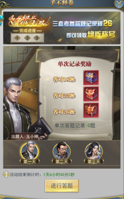活动期间,三张考卷单次答题记录都达到26题后可获得“才气无双”绝版称号奖励。