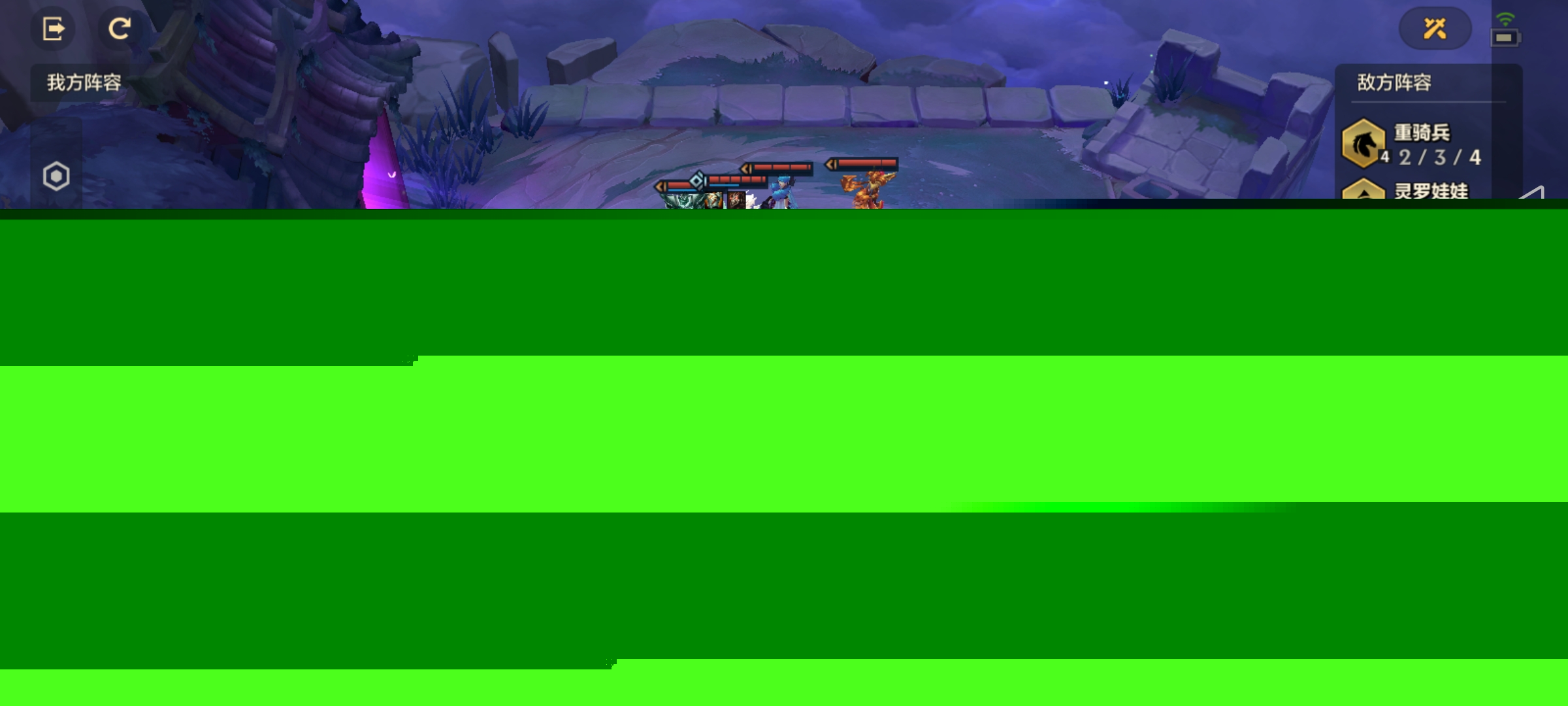 主要是4重骑羁绊,重骑兵羁绊在开局和冲锋会获得双倍免伤,持续4秒,我们控制不了他们的开局双倍免伤,但是可以控制他们后续冲锋的双倍免伤。把阵容全部缩在右角抱团,因为对手已经冲到我们脸前了,就算击杀了前排加里奥后是也是无法继续冲锋的,无法触发触发双倍免伤BUFF,这就大大降低了他们的坦度,让我们能更加容易处理对手。