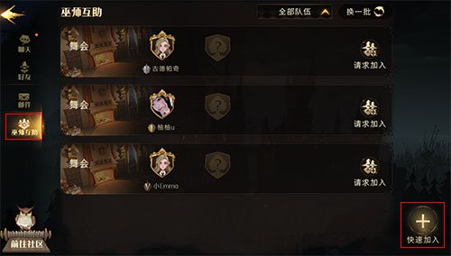 2、然后就会出现巫师互助界面,点击右下角的快速加入按钮,打一次副本就完事了。
