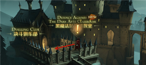 首先往霍格沃茨礼堂这里飞,如下图所示的方向;