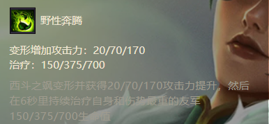 四狂野效果:在战斗开始的时候被选中的对于将会得到强化,攻击敌方英雄,敌方无法闪避,且每次攻击增加10%攻击速度叠加至五层。
