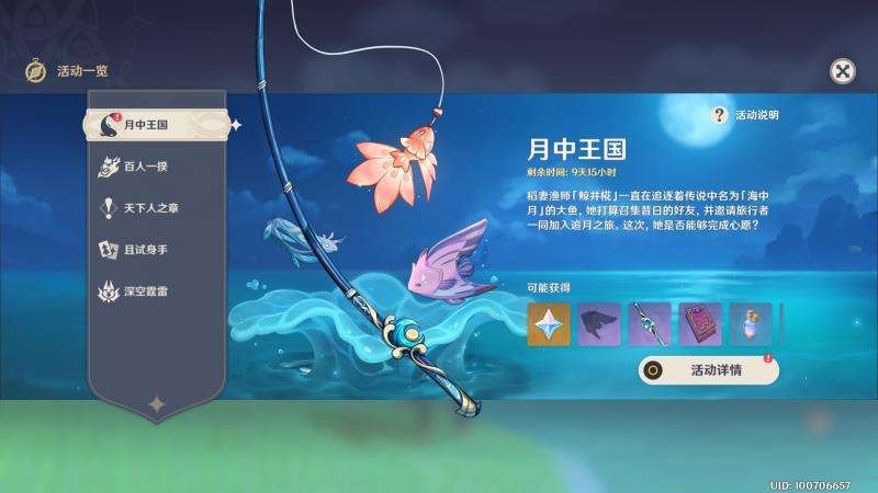 首先在活动更新并且在完成了魔神任务[离岛逃离计划]、开启诚歌壶并完成蒙德楠塔克的[鱼群大爆发]之后,我们打开任务面板,能看到已经自动接到了月升之时任务,