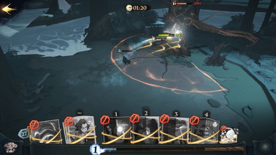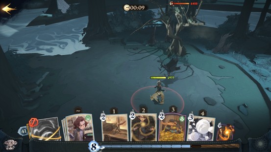 打人柳虽然伤害高,但自身无法移动,在魔力值足够的情况下直接使用气象咒、八眼巨蛛的毒液、火焰熊熊等能够造成持续伤害的咒语卡不断消耗其血量,并时刻注意走位回避打人柳的枝条控制技能和范围攻击,最终将其击败。