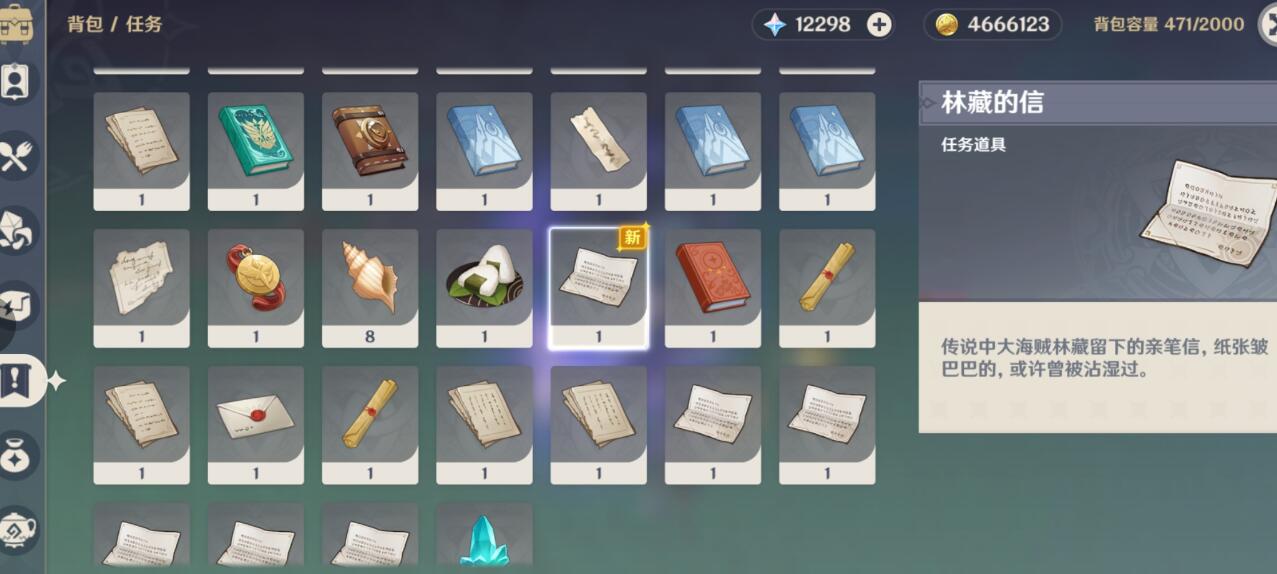 打完盗宝团后会有一份“林藏的信”。
