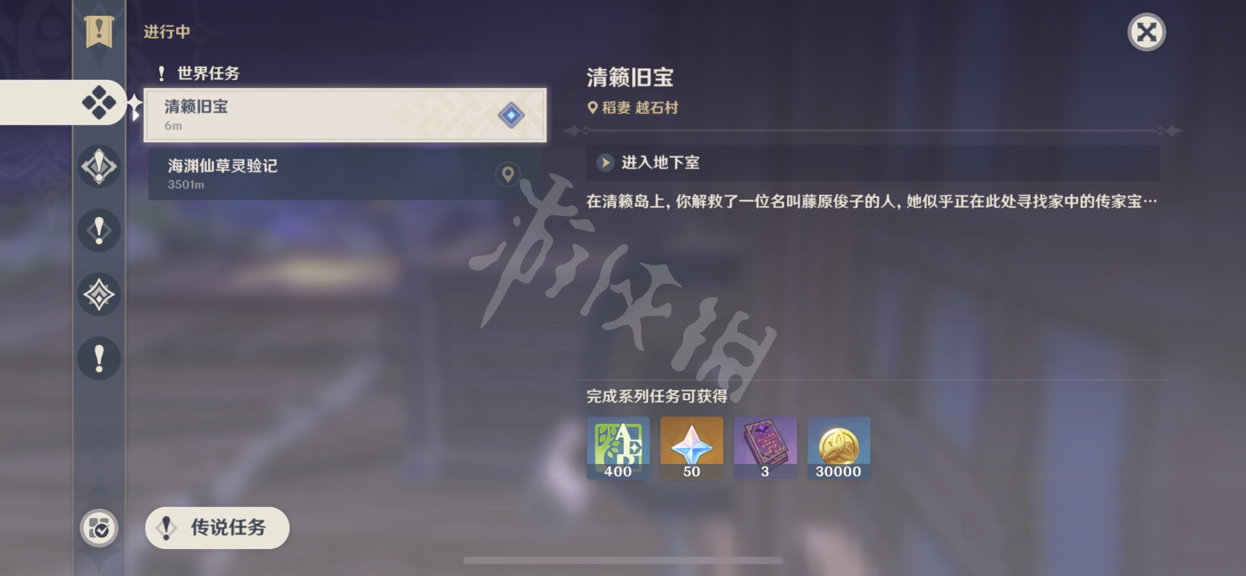 然后接取—清濑旧宝—这个任务。