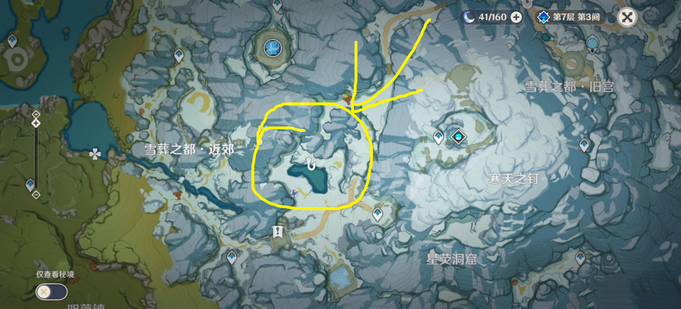 在蒙德雪山中,稀有鱼(定时,定点出现)