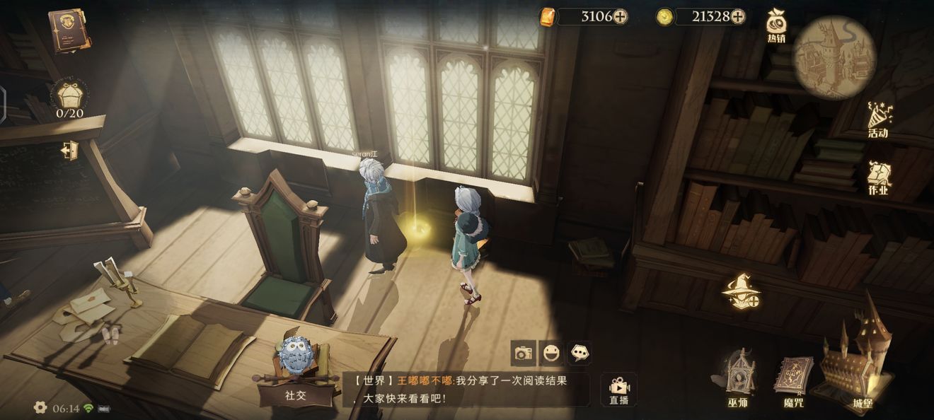 【魔法史教室】从城堡主楼进入才可以进教室,然后点教室台后面的书上的金光。
