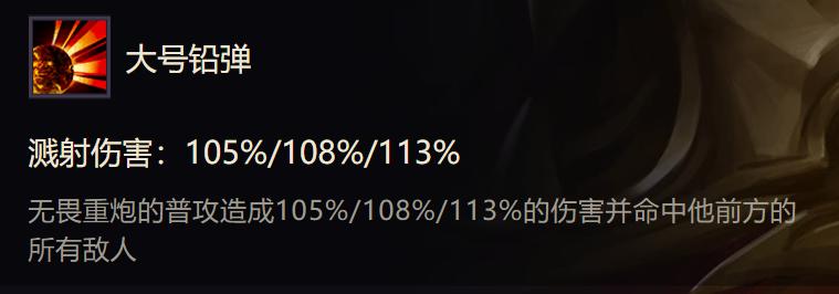 解析:无畏重炮普通攻击具有溅射伤害,前方附近的敌人将全会受到伤害。
