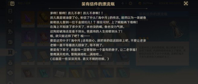 原神钓鱼装有信件的漂流瓶是什么 钓鱼装有信件的漂流瓶作用及信件内容详解
