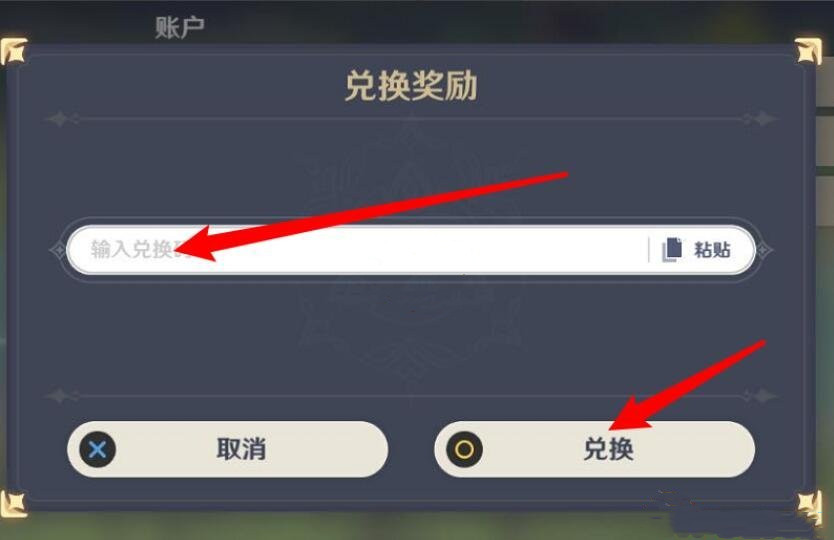 打开原神,点击左上角的头像,点击左侧的设置图标,进入设置界面,点击账户,然后点击兑换码后面的【前往兑换】,输入兑换码,点击兑换就可以了。