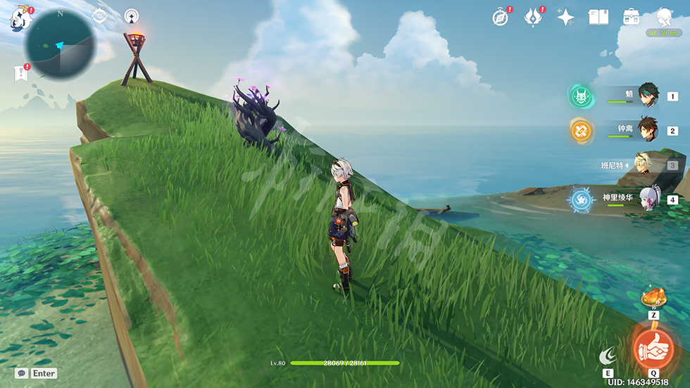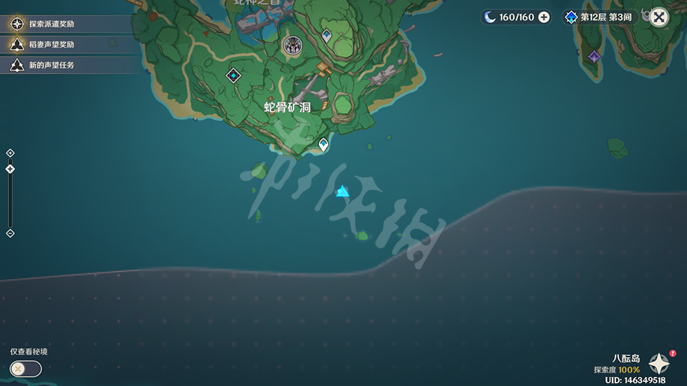 首先来到蛇骨矿洞这个传送点,看向海面处几个小岛,可以直接游过去,不需要浪船。