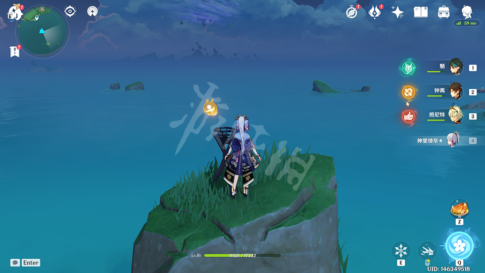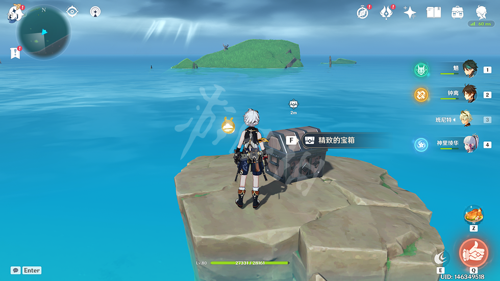 最后飞到四个岛中间的石头上就有宝箱啦。