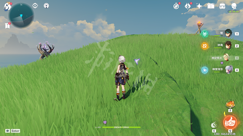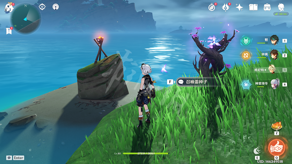 然后游到第一个火把处,点燃火把,之后旁边有雷樱树,可以直接飞到第二个点。