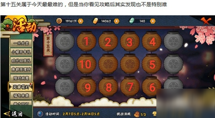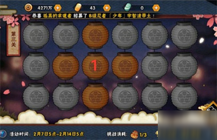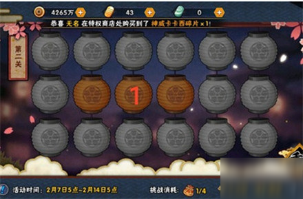 街机cn 来源:厂商 发表于:2021-09-18火影忍者手游花灯解谜大家该怎么过,目前本次的新活动,还有不少小伙伴都在询问通关步骤,下面为大家介绍火影忍者手游花灯解谜攻略大全。