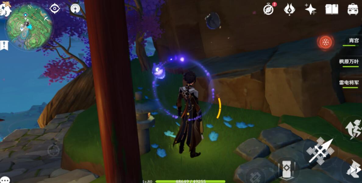 此处有一个小妖狸,跟着他三次,它会跑到一边,变成电灯台,然后用雷种子点亮电灯台即可,这个妖狸每天刷新。