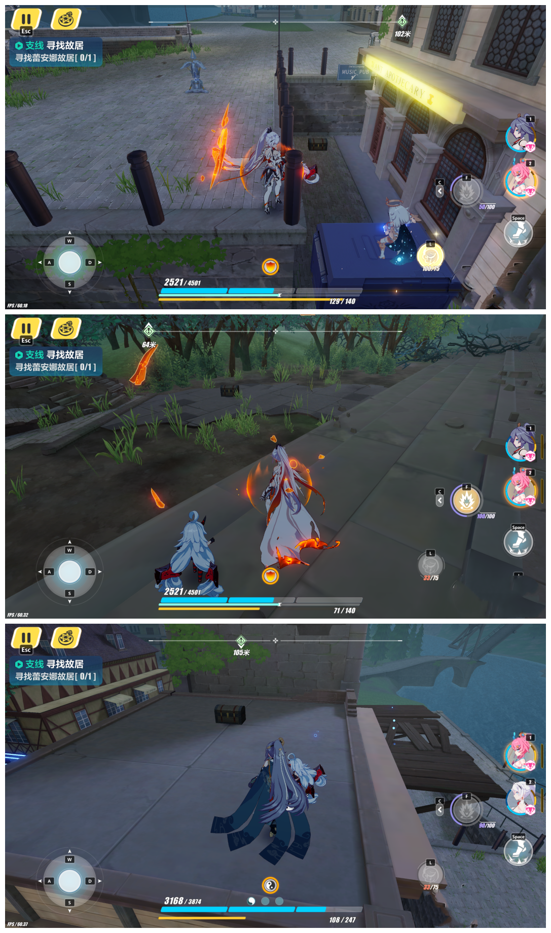 第三个,同样斜坡的左边屋顶上,踩着机关就可以拿到