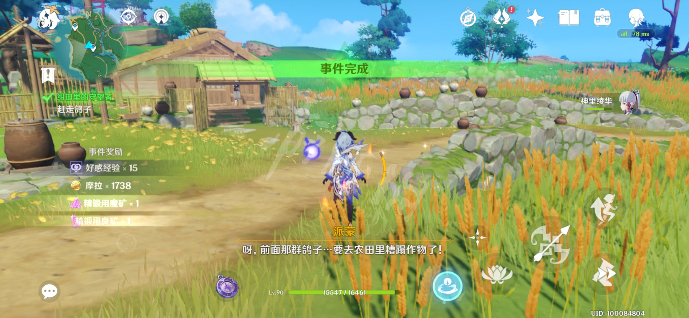 绀田里的守望者是稻妻地区的突发任务,完成后可以获得15点人物好感度。