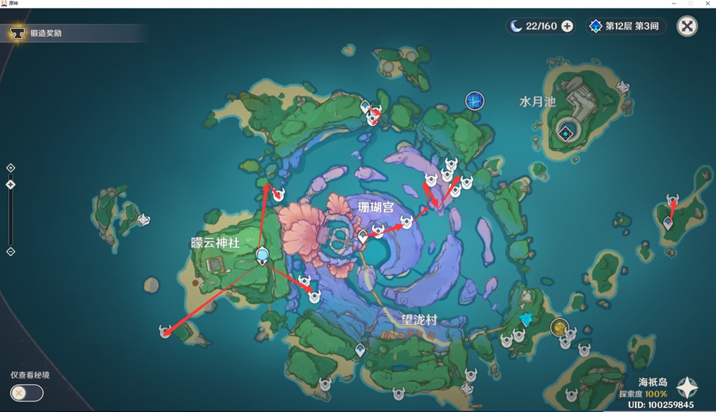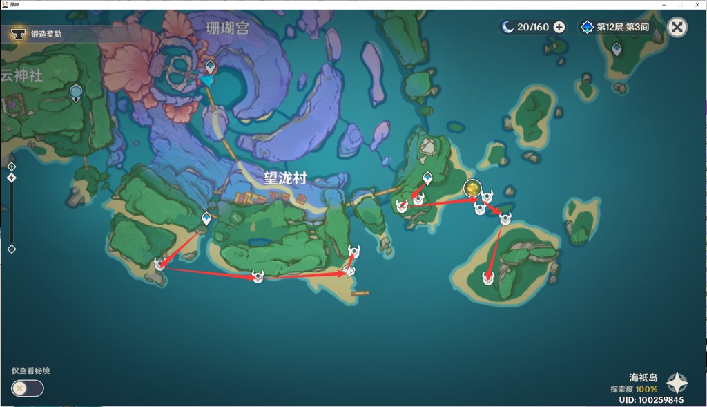 这个路线,右侧路线 最后的两个激活点 一个在两小小岛的中间,最后一个在三个石头组成的小阵中间,其他都还行,就注意一下高低差就好