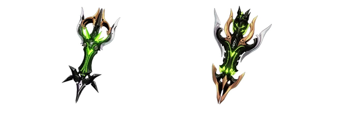「往世的蛇影」与「往世的蛇影·死之衣」是5.2版本新登场的十字架武器及其超限形态,武器主动技能会召唤出十字架生成蛇影领域,周期性对领域内的敌人造成雷电元素伤害并标记敌人。