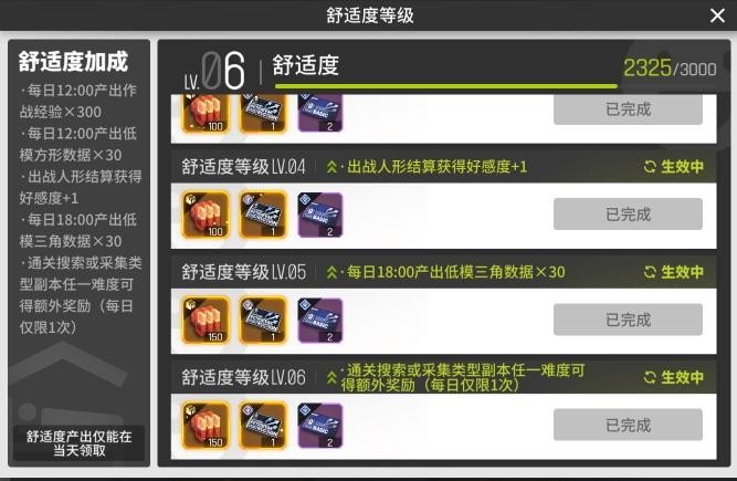 宿舍:舒适度加成6级为性价比最高的一个点,推主线的资源足够舒适度6级。