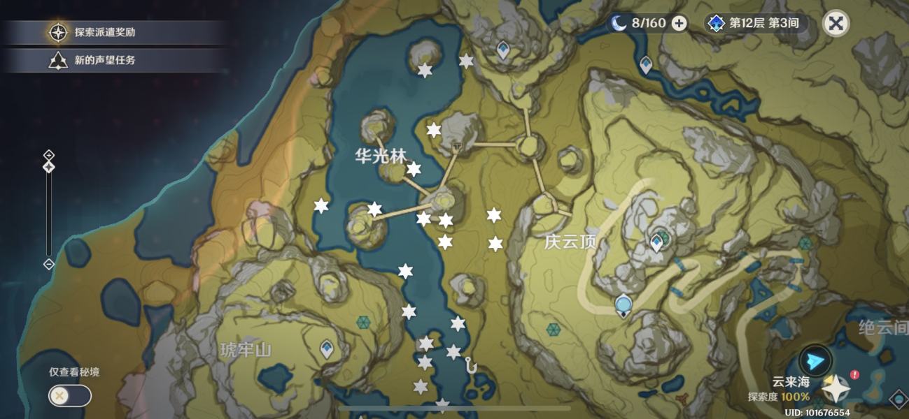 目前已找到的璃月西北区域【玄月宝箱】(目前27个)位置如下。
