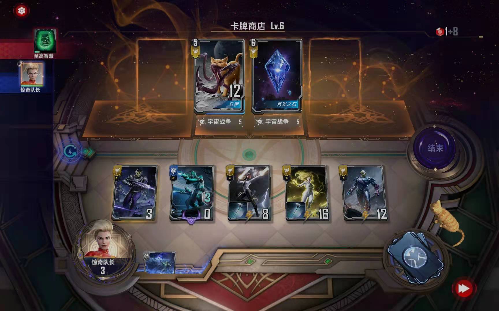 第三小节:购买惊奇队长+克里冲锋事件卡;