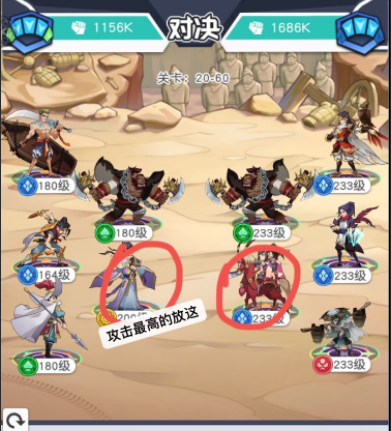 3、如图,4号位放一个体型大的英雄,攻击最高的武将不会被鹰抓走