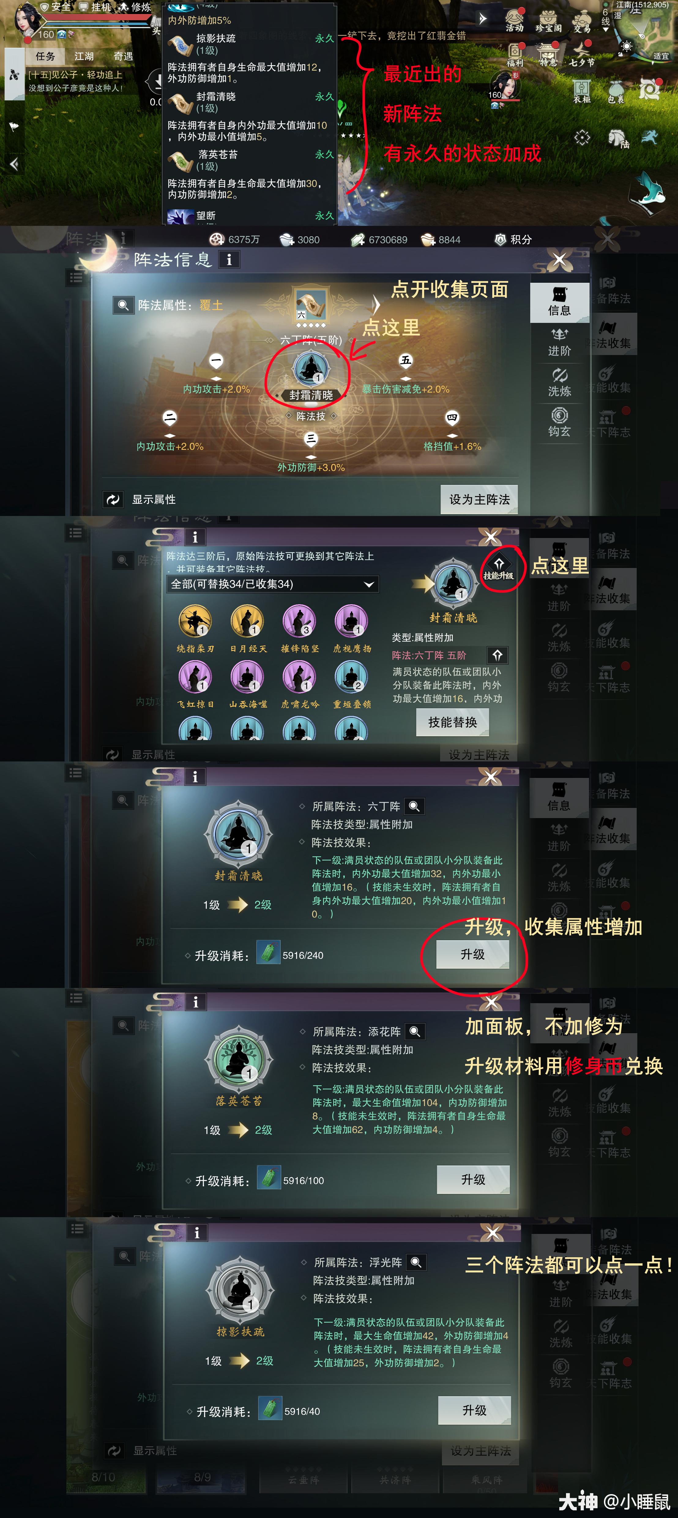 ①金属性阵法留暴击内功,火留内功属攻,水木土主留气血,其它没提到的属性看自己需求留。