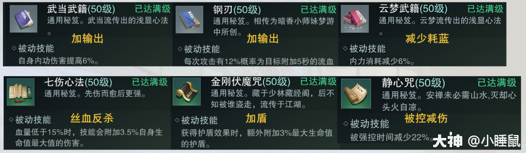 建议:秘籍的选择并无固定,一切看自己喜好。当然,如果你预算够,直接一步到位做成型期的秘籍搭配~