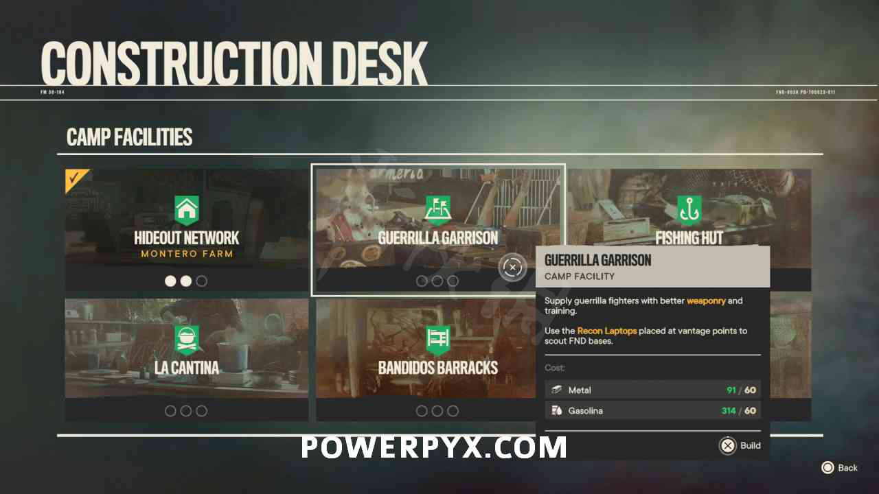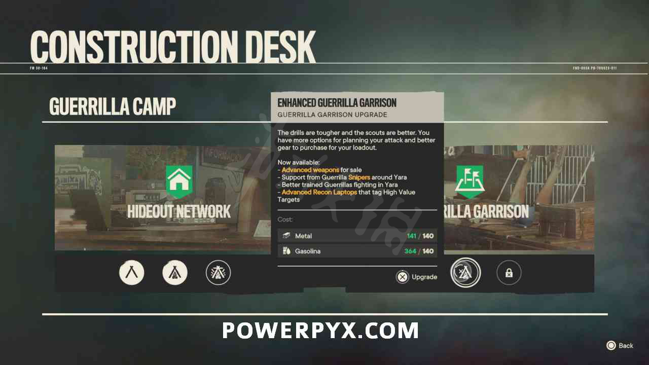 1.在任意一个营地中建造“游击队驻军”设施,建造需要60合金+60汽油。