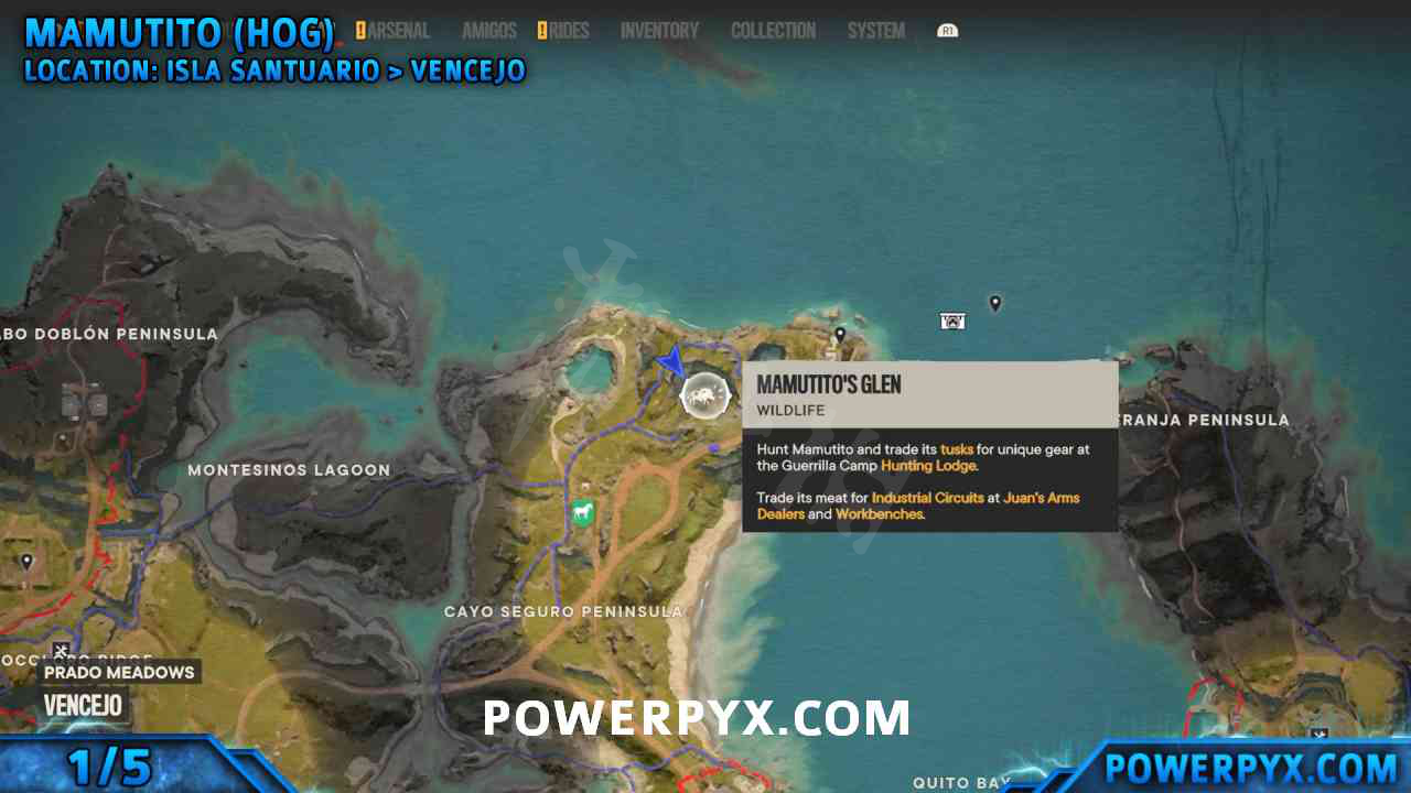位置在圣图里奥岛北部,狩猎后解锁Mamutito的獠牙。
