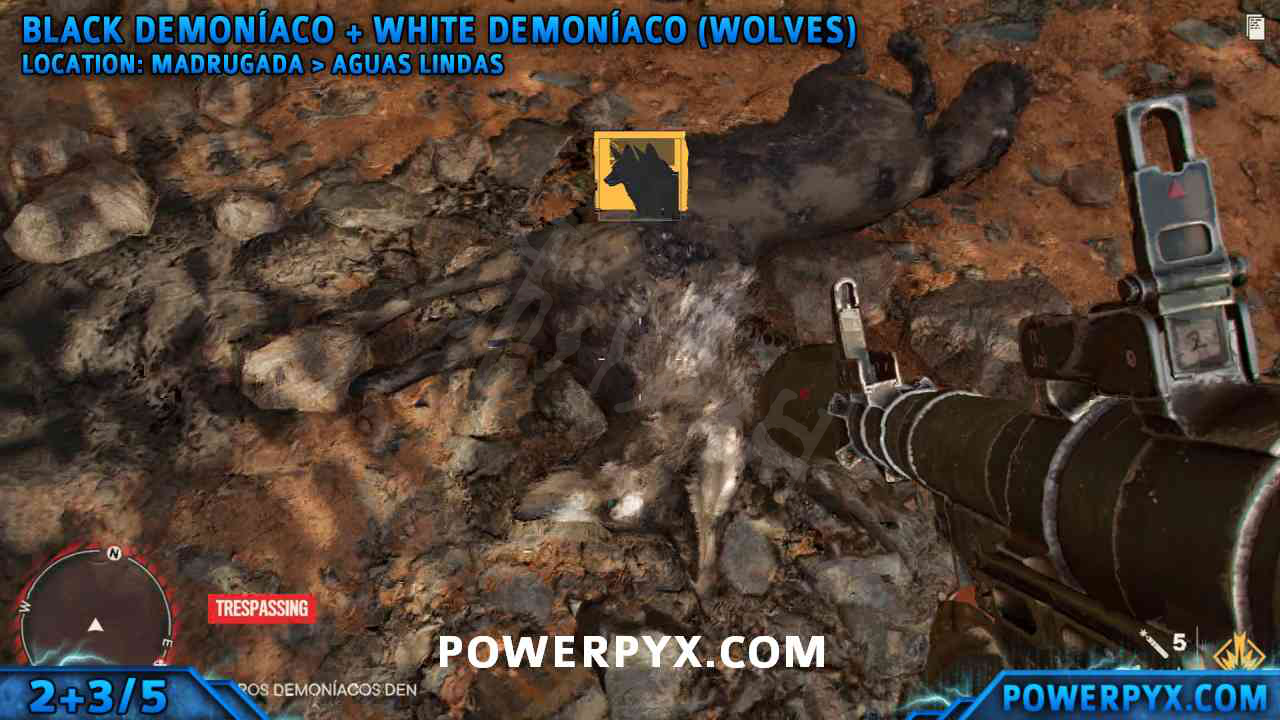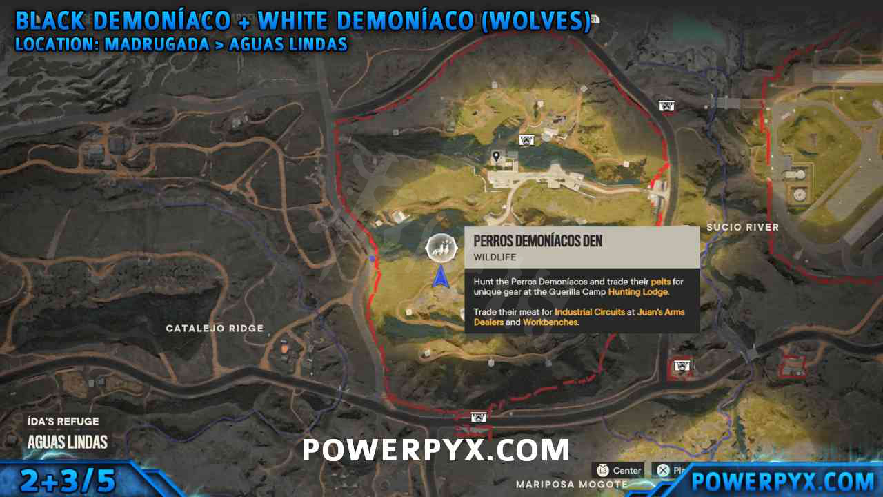 位置在马鲁加达地区,两只狼刷新在一起,狩猎后解锁黑色和白色恶魔毛皮。