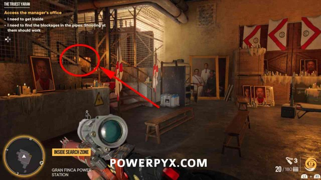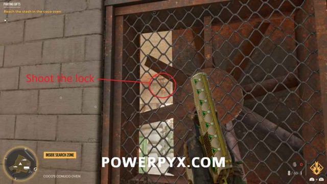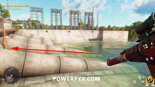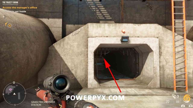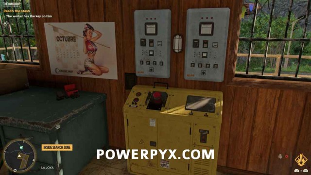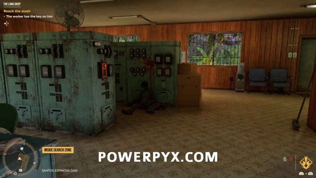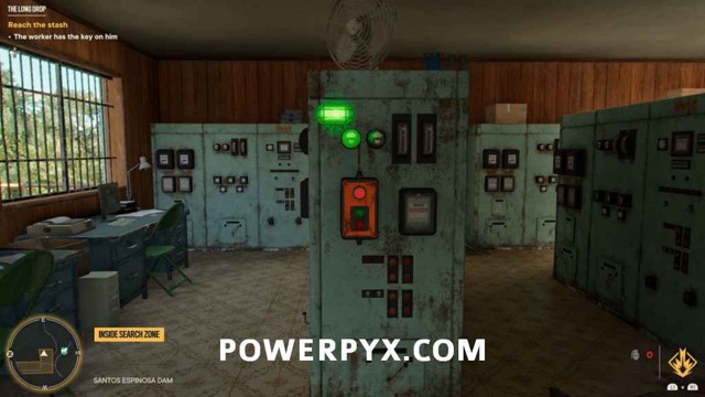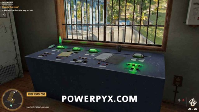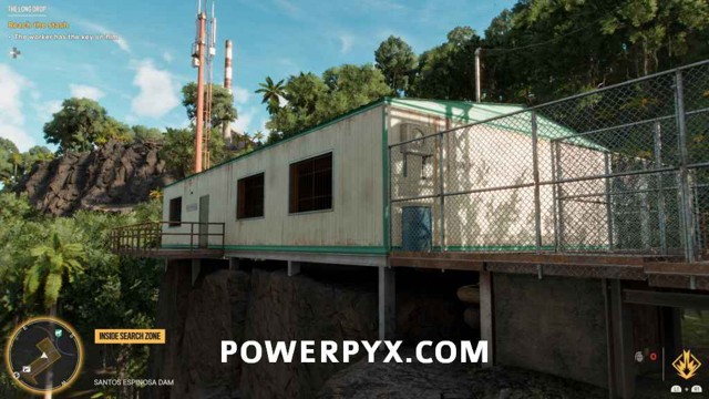 为了能够访问藏匿处,您首先需要找到大坝棚的钥匙。爬上你旁边的梯子,穿过大坝的另一边。绕过这里的建筑物后面,透过窗户看,您将能够看到可以射击的锁。射它。爬上屋顶,穿过你打开的门。