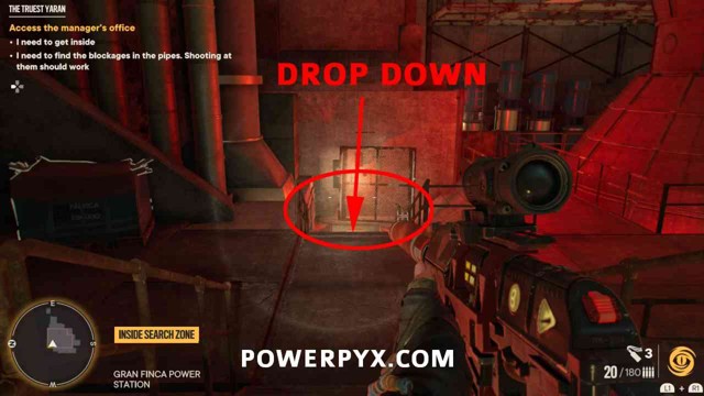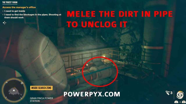 第 4 步:在您完成第一个管道后,有第二个管道需要疏通。你需要下降到下面的地板才能找到这个管道。近战或射击其中的污垢。这将恢复电力。