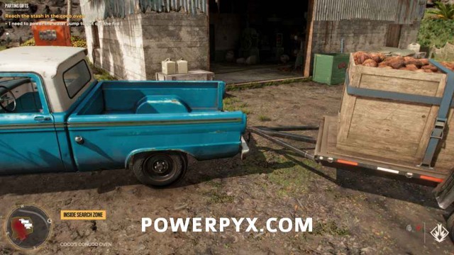 将发电机开到可可烤箱南边的开放小屋,并将发电机放在小屋内。您可能需要将其倒车或断开与卡车的连接并将其推入。一旦发电机进入小屋,它将自动连接并为蓝色水泵供电。