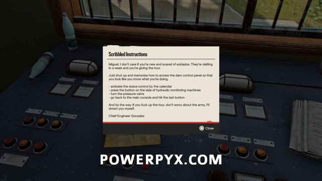 在里面,您需要访问大坝控制面板,为此您需要以正确的顺序与一些事物进行交互。