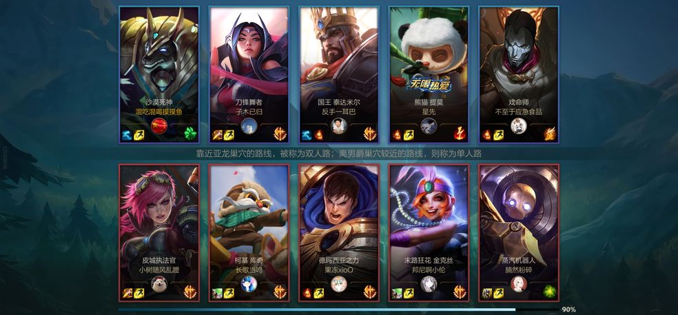 接下来是各分路的英雄推荐:上路可选狗头和盖伦,中路可选阿狸和拉克丝(光辉女神),野区可选易(无极剑圣)(前期猥琐点,不保证绝对能杀就不要上,