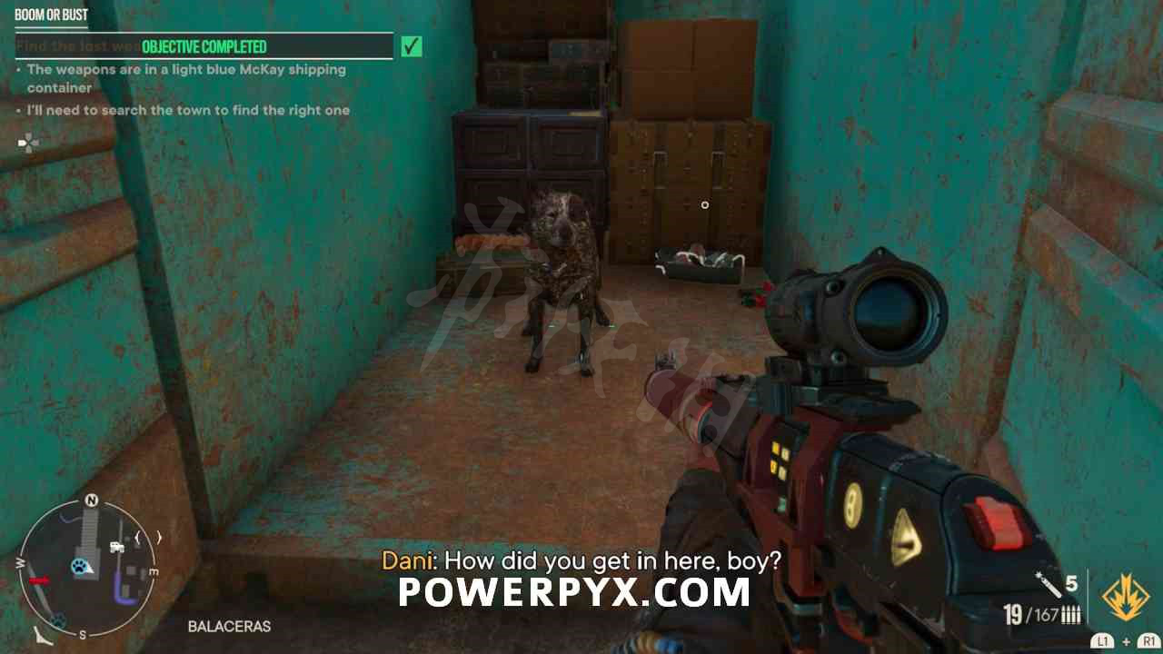 解锁方法:完成雅拉故事【枪杆子里出政权】后奖励获得,或者不做任务直接去布布所在位置将其救出也可以解锁,节省做任务的时间。布布被困在【黄金谷】区域【菲罗扎】小镇西部的一个蓝色集装箱里,位置如下方图片所示,射击打开集装箱的锁即可将其救出。