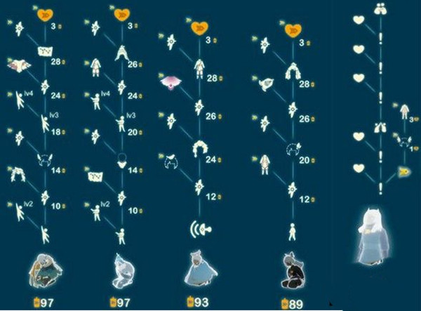 这个季节包含4个先祖,2个斗篷,4条裤子,4个发型,4个头饰,1个乐器,1个站姿,1个叫声,2个动作,还有1个领结。主卡毕业大概需要58天,副卡毕业60天。