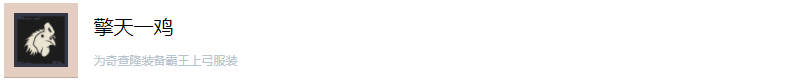 擎天一鸡是游戏中一个比较简单的成就,完成条件为:为奇查隆装备霸王上弓服装。