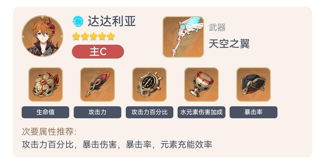 公子达达利亚五星武器首选新出的【冬极白星】,钦定公子专武,或者【飞雷之弦振】同样是适合公子顶尖武器。其次可以选择老牌五星劳模【天空之翼】,更加容易达到毕业面板。虽然五星弓内卷严重,但天空弓仍处在一个不低的地位。