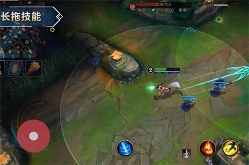 长拖会显示技能范围并可以自由选择释放目标和方向,这种释放方式类似于端游中的非智能施法,优点在于可以预判敌人走位,比如锤石的1技能等
