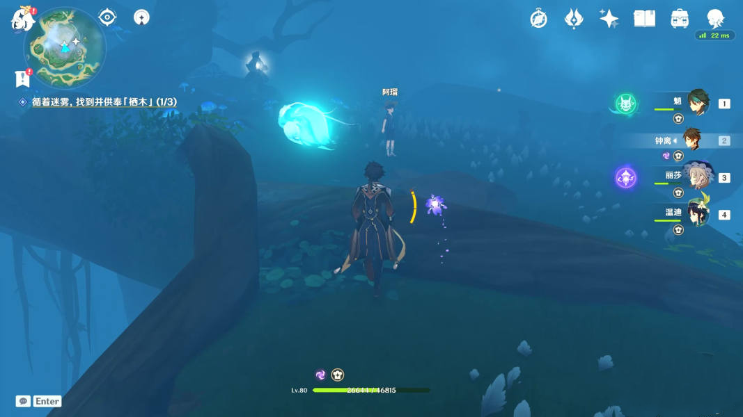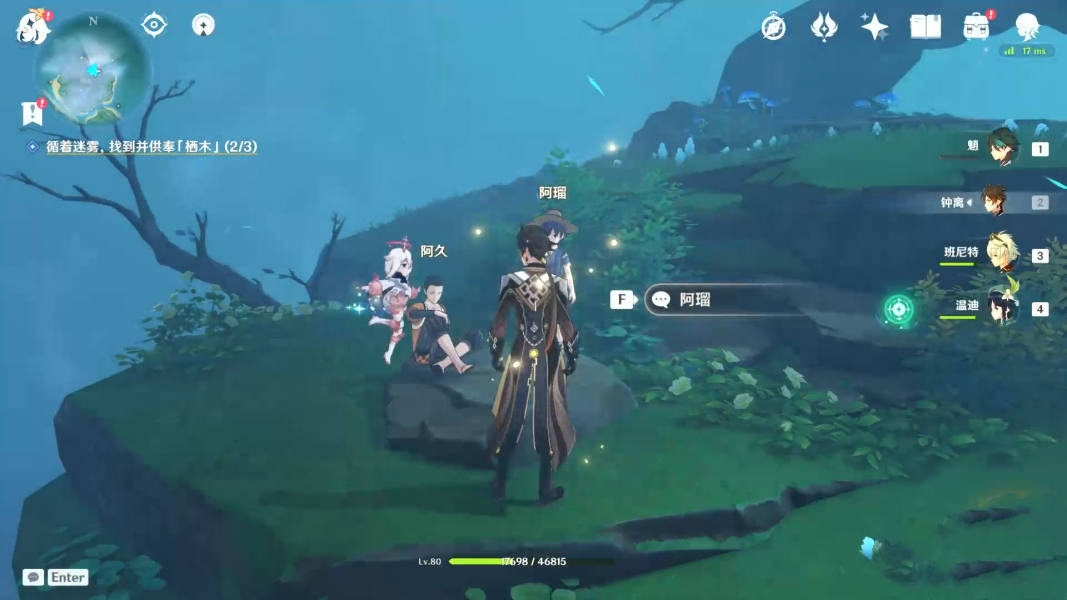 4、与小朋友阿瑠对话后,前往此处再次找到它,开始我们的第一次【供奉栖木】。